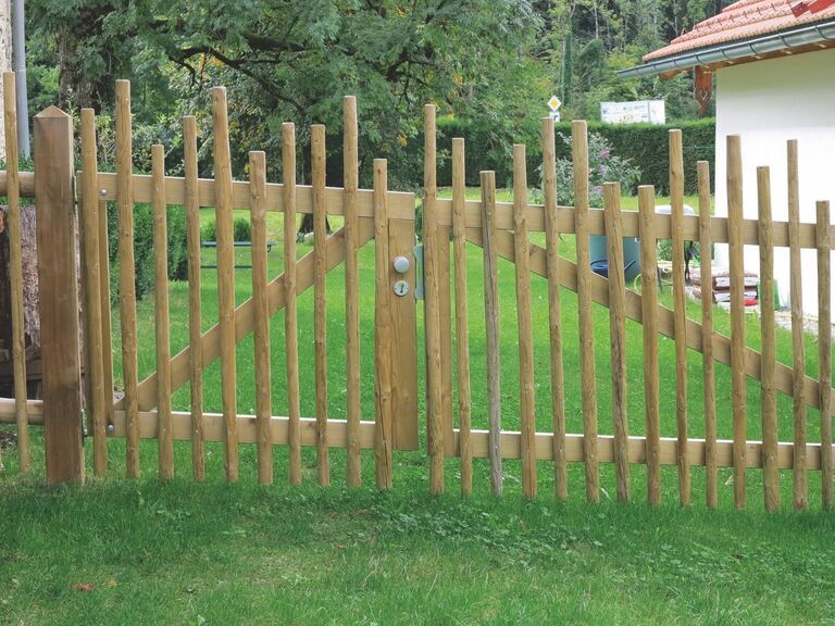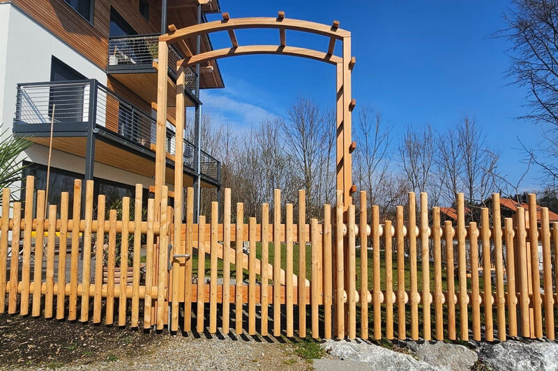 Für die Herstellung eines Hanichlzauns werden geschälte, unterschiedlich starke Holzstangen senkrecht auf waagerechte Bindestangen montiert und stabil im Boden verankert. Sie haben die Wahl zwischen naturbelassen ungleich geschälten Rundstangen oder zylindrisch gefrästen Hanichl für eine gleichmäßigere Optik. Besonders reizvoll wirkt der Hanichlzaun mit unterschiedlich langen Latten, die dem Zaun Dynamik und einen verspielten Charakter verleihen. Auf Wunsch liefern wir Ihnen nicht nur das passende Material inklusive Tor, sondern übernehmen auch die fachgerechte Montage Ihres individuellen Naturzauns.