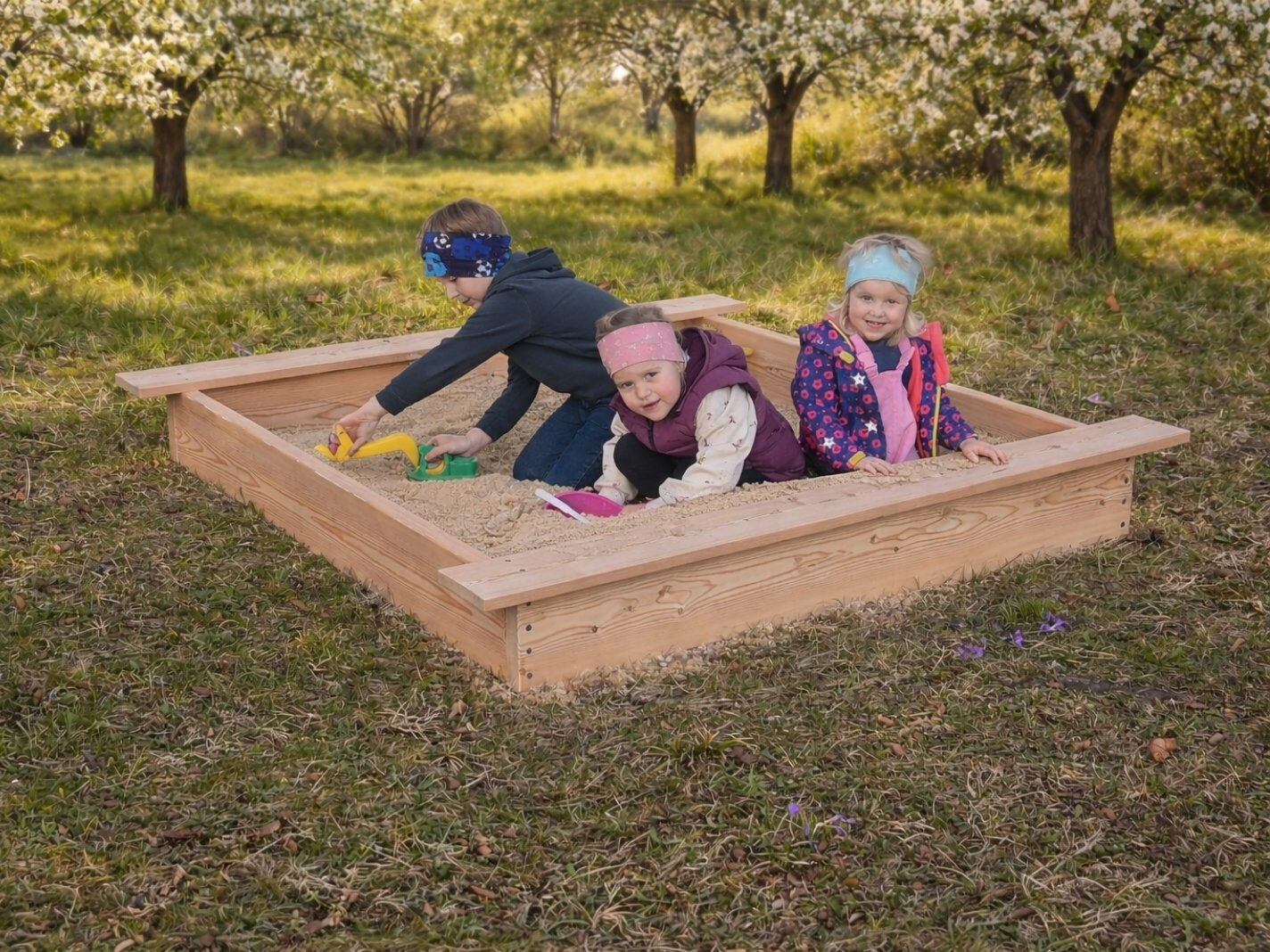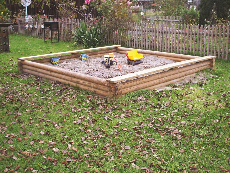 Sandkästen, Wippen und Federspielgeräte aus Holz